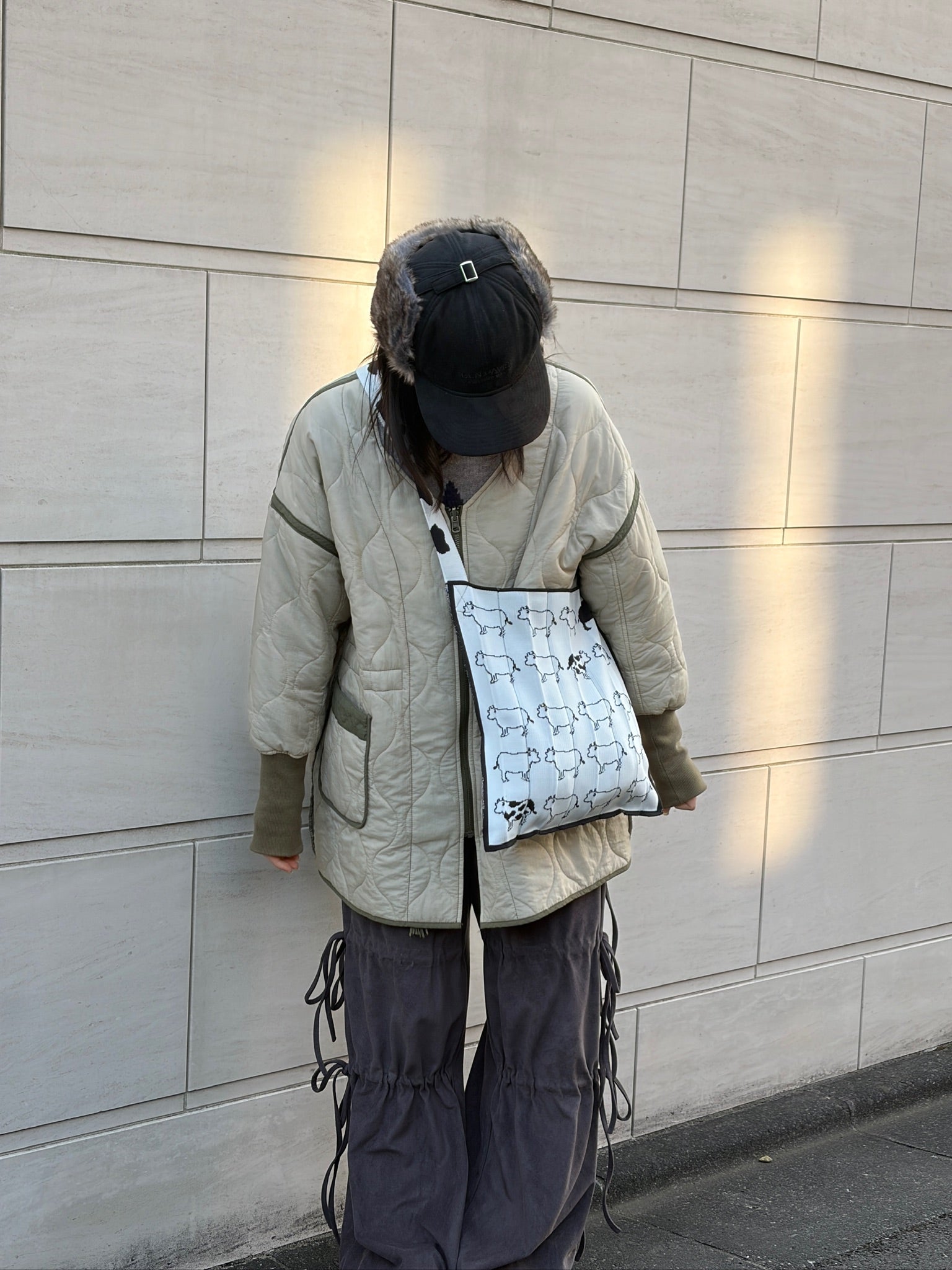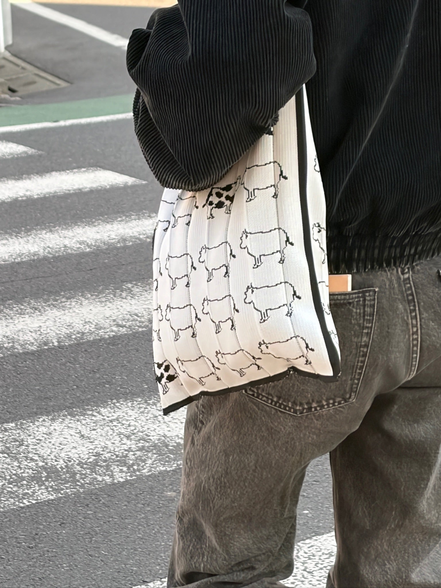A playful design featuring 20 woven cows, paired with a cow-print shoulder strap that instantly catches the eye.