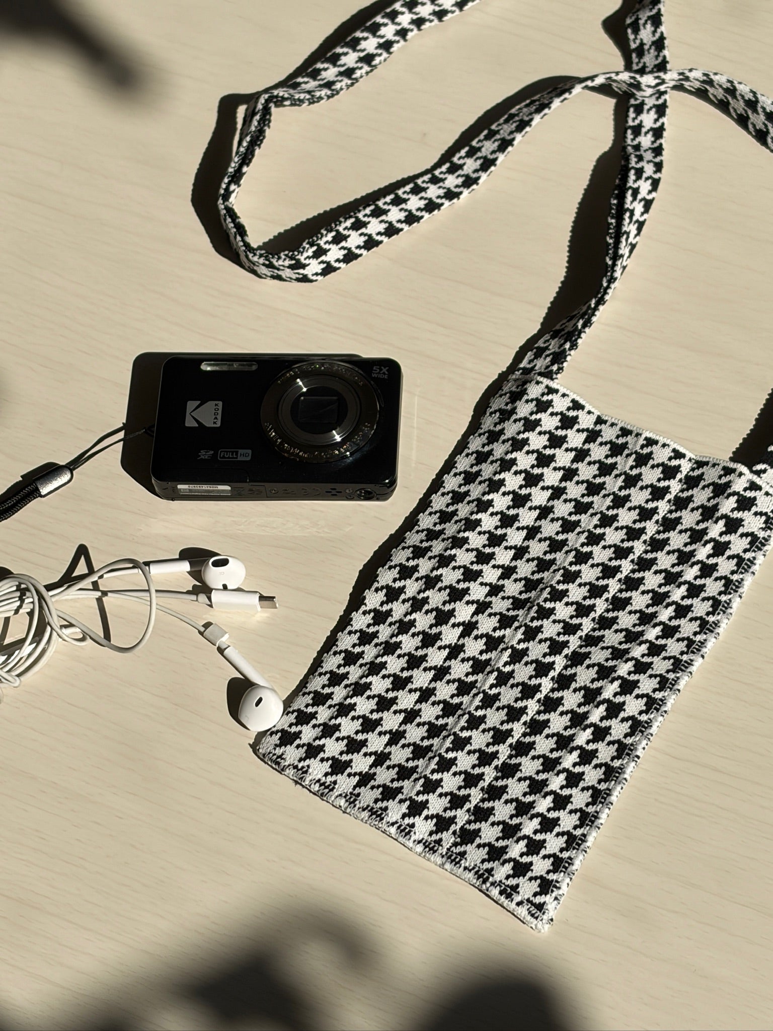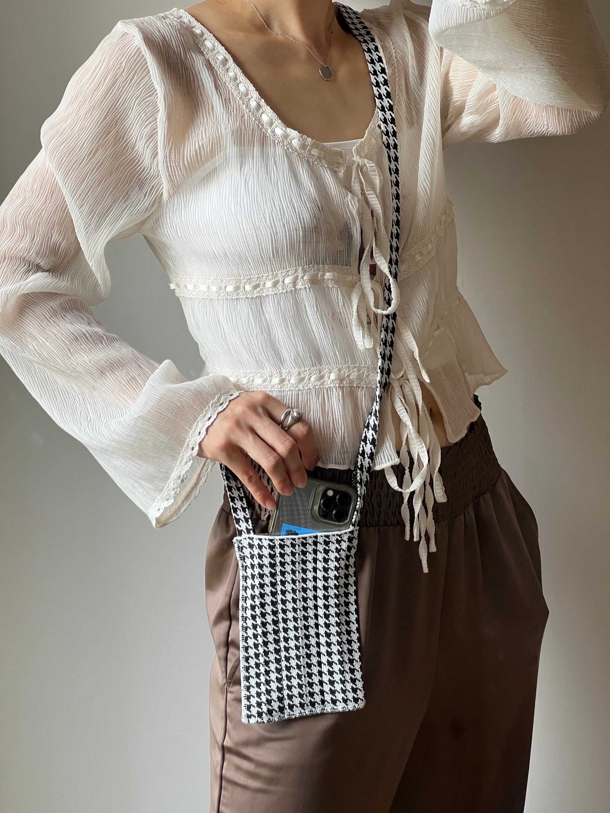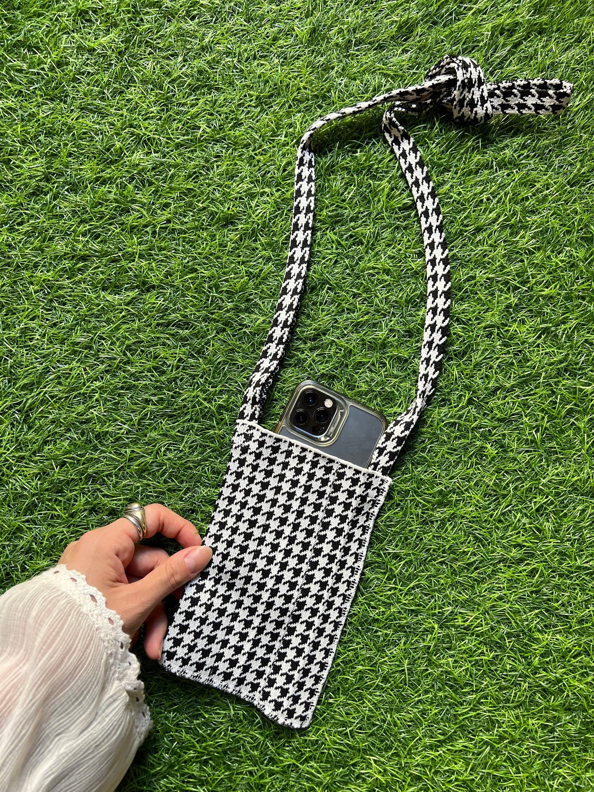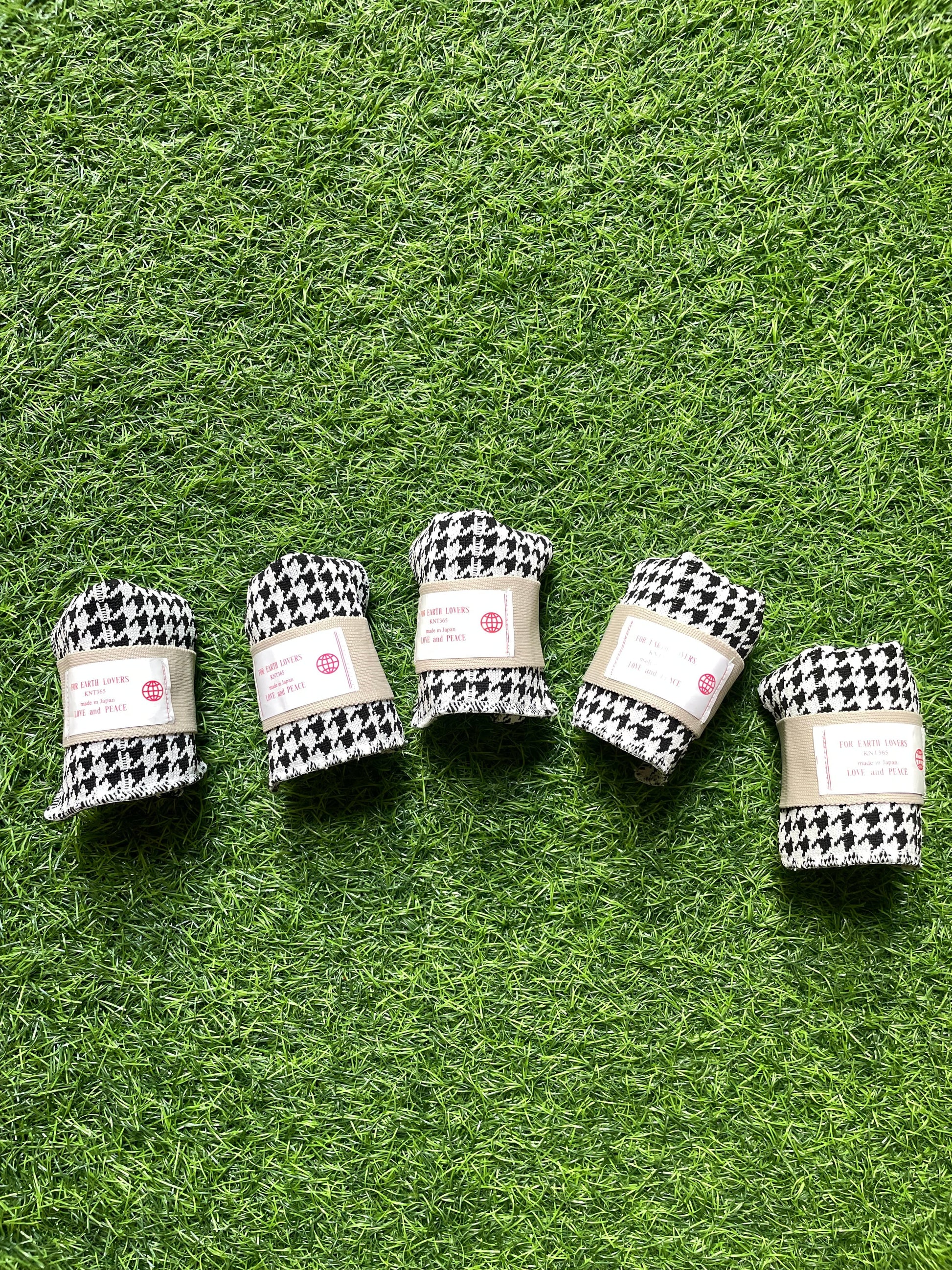 A black houndstooth pattern that adds a fresh accent to your outfit.