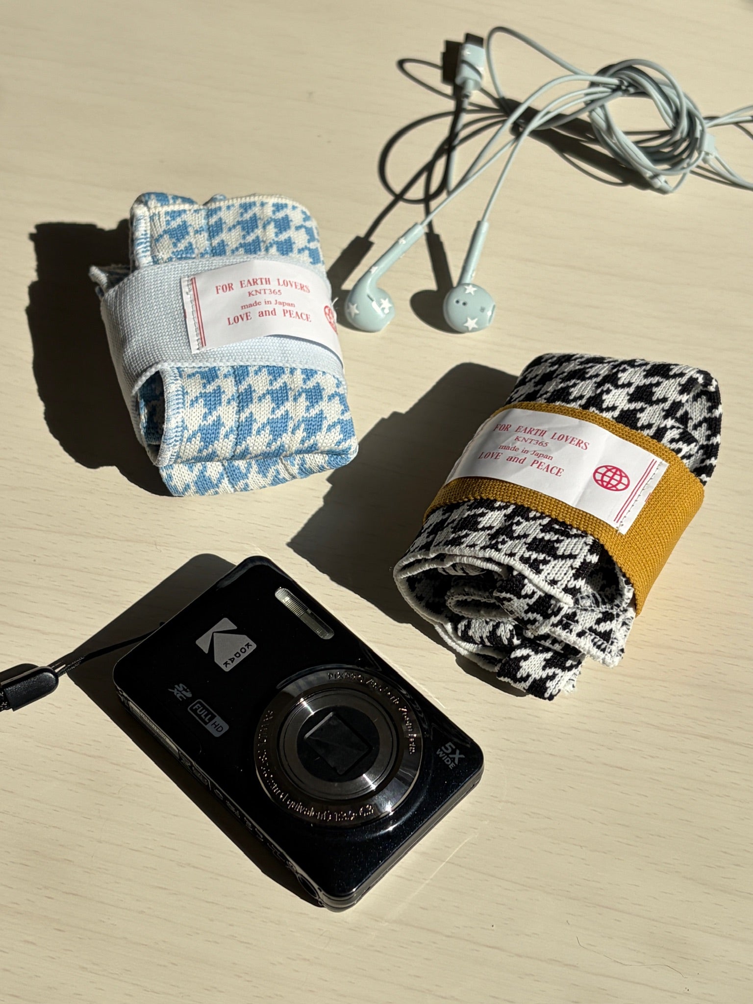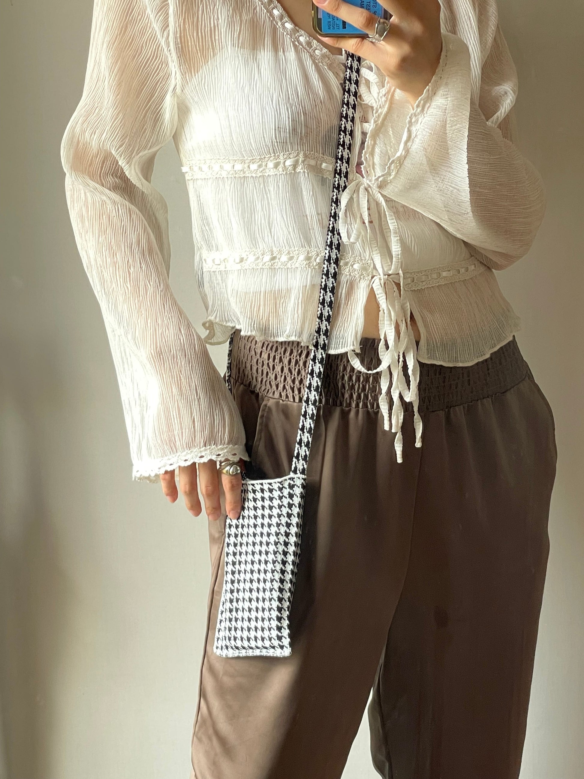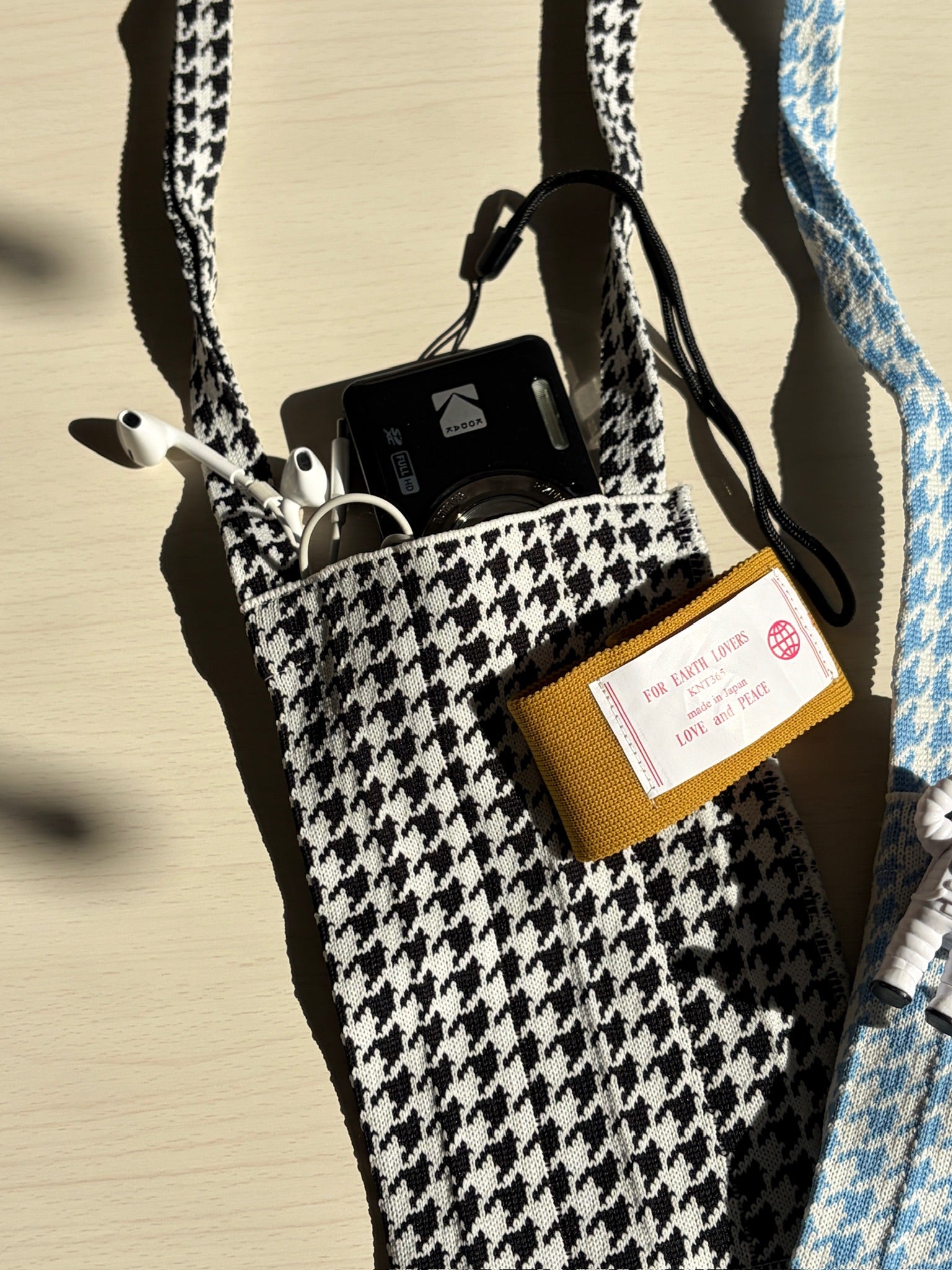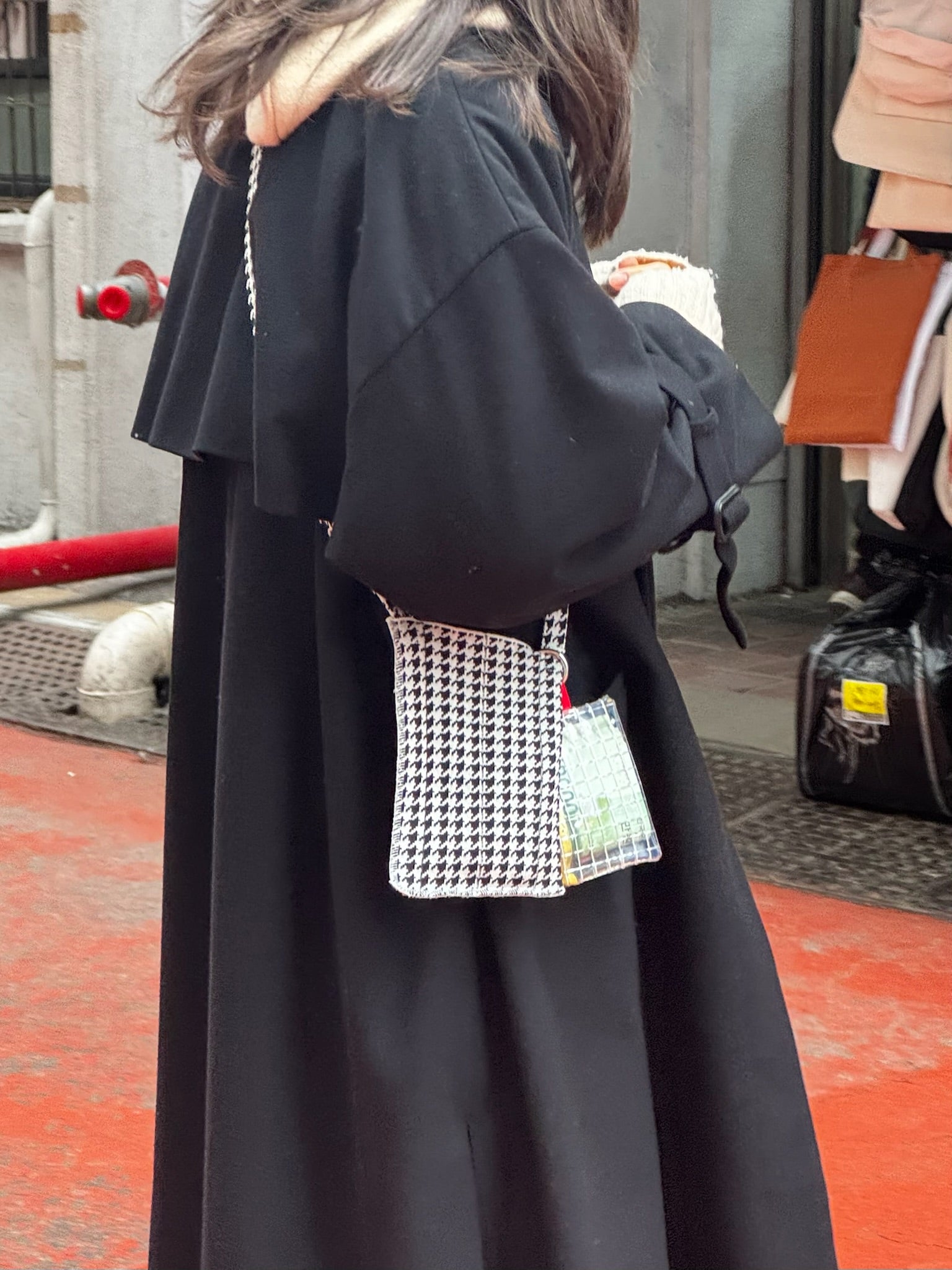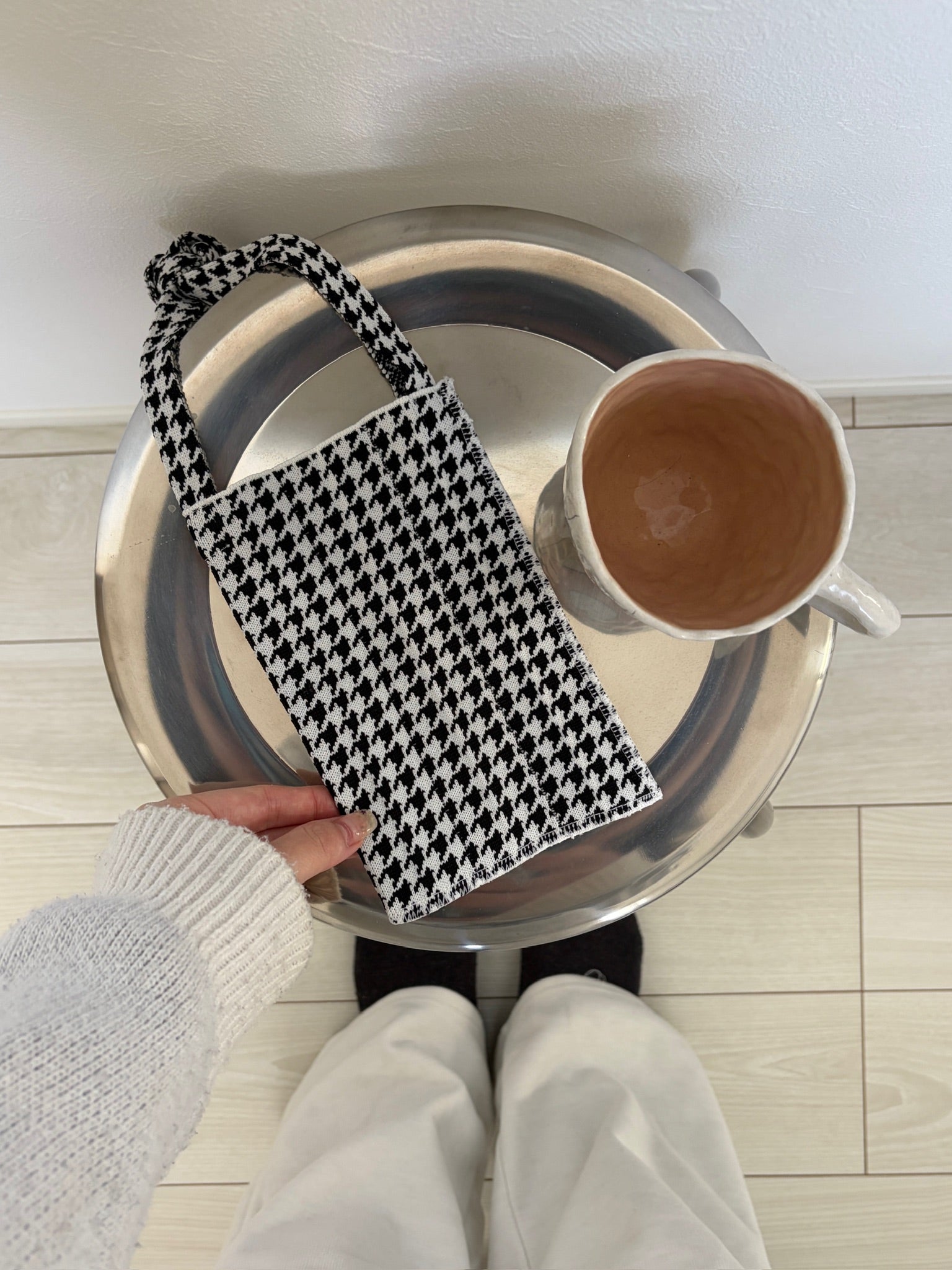 ブラックの千鳥柄がファッションのワンポイントになるデザイン。