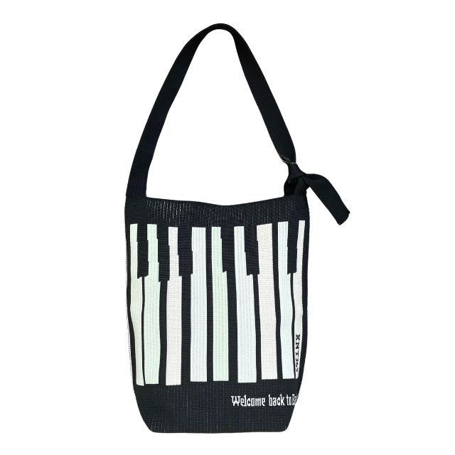 A charming black colorway featuring an adorable piano motif.
